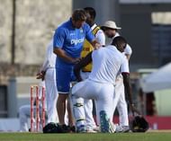 Unlike the others, Chase wasn't confined into a shell and played positive cricket for most part of his innings. He soon crossed another half-century but had to retire hurt soon after as a Mohammad Amir delivery struck him on his triceps. While the injury seemed minor, West Indies wanted to take no chances and pulled back Chase.