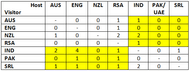 The table below shows the list of innings defeats by every country in away Tests since July 2008 (record in unfavourable conditions highlighted in yellow):