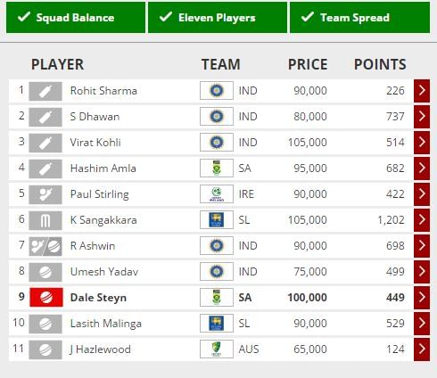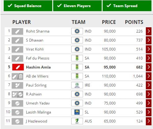 However, if they bat second, it wouldn’t be very easy to pick the players who would end up with maximum points. The deck is batting friendly, so ideally the UAE batsmen should help themselves to a 170+ score, which will mean Amla could end up with 130 points (by scoring around 75 runs) and that makes him a compulsory inclusion.