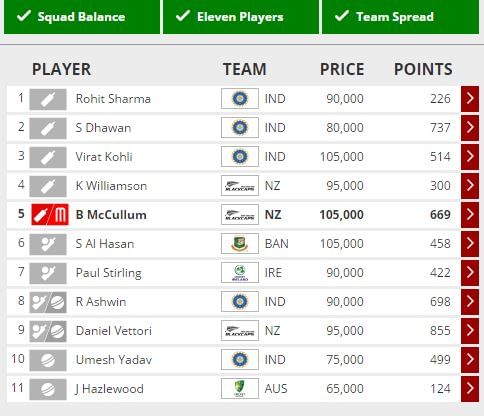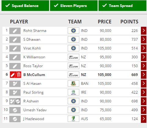Brendon McCullum could go hammer and tongs irrespective of the toss, so that makes him an absolute necessity. Given his style of play, he is never too far away from a failure though.