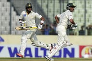 Both batsmen kept their calm and milked runs off seamers and spinners alike as Younis slapped Sarkar towards sweeper cover for two to bring up his 29th Test century. Soon after Azhar lifted Taijul over the top for a boundary to reach his eighth century.