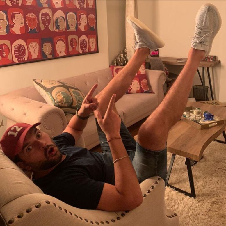 Whilst at home, Singh seems to enjoy spending most of his time playing video games in a casual entertainment room. A beige L-shaped couch can be easily found here, resting close to glass doors, which lead to yet another balcony. Just like their living room, this den features lots of bright printed cushions, but the highlight of this place has to be the trophies which sit above the duo's pearly white curtains on a high wooden shelf.