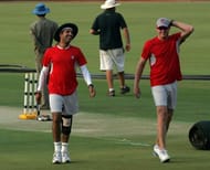 He gave his teammates a surprise by visiting one of the practice sessions, much to the cheer of fans and the players. He even took a few knocks in the nets.