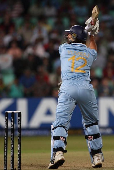Yuvraj scored 58 off 16 balls before getting out to Flintoff. India finished at 218/4 from 20 overs and went on to win the game by 18 runs.
