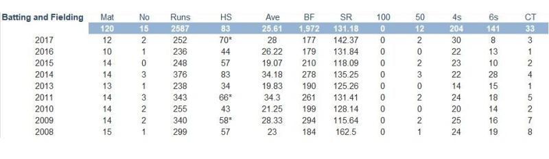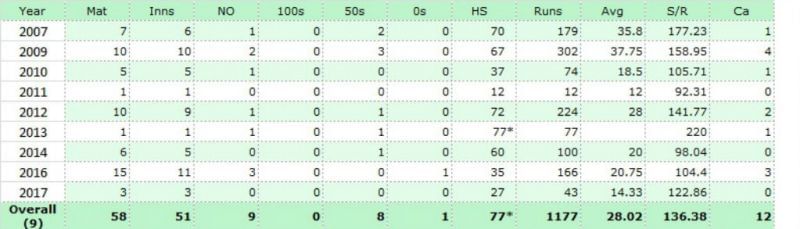 The 36-year-old was in reasonable touch in the first few editions of the tournament but the second phase of his IPL career seemed horrendous. His average and strike rate went down in the seasons after 2011.