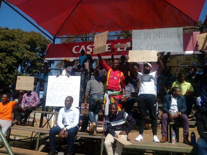 During the T20I tri-series, fans greeted the Zimbabwe players with banners and placards, which read statements such as "No to victimization," "ZC board must go" and "enough of mismanagement of funds."