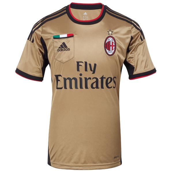 Last season saw Milan lose the Scudetta to reigning champions, Juventus but none the less, they looked very fierce when they took to the field in their fierce golden 3rd kit. Thats right, golden!!! Granted, this jersey may take a little getting used to, but it actually is very good design, simple and effective. The gold only adds to its grandeur. The front and back of the jersey is a solid block of gold color. The sides, shorts and stockings are black. It was black lines running down the sleeves of the jersey and even sports a breast pocket, with the Italian tricolor on them.