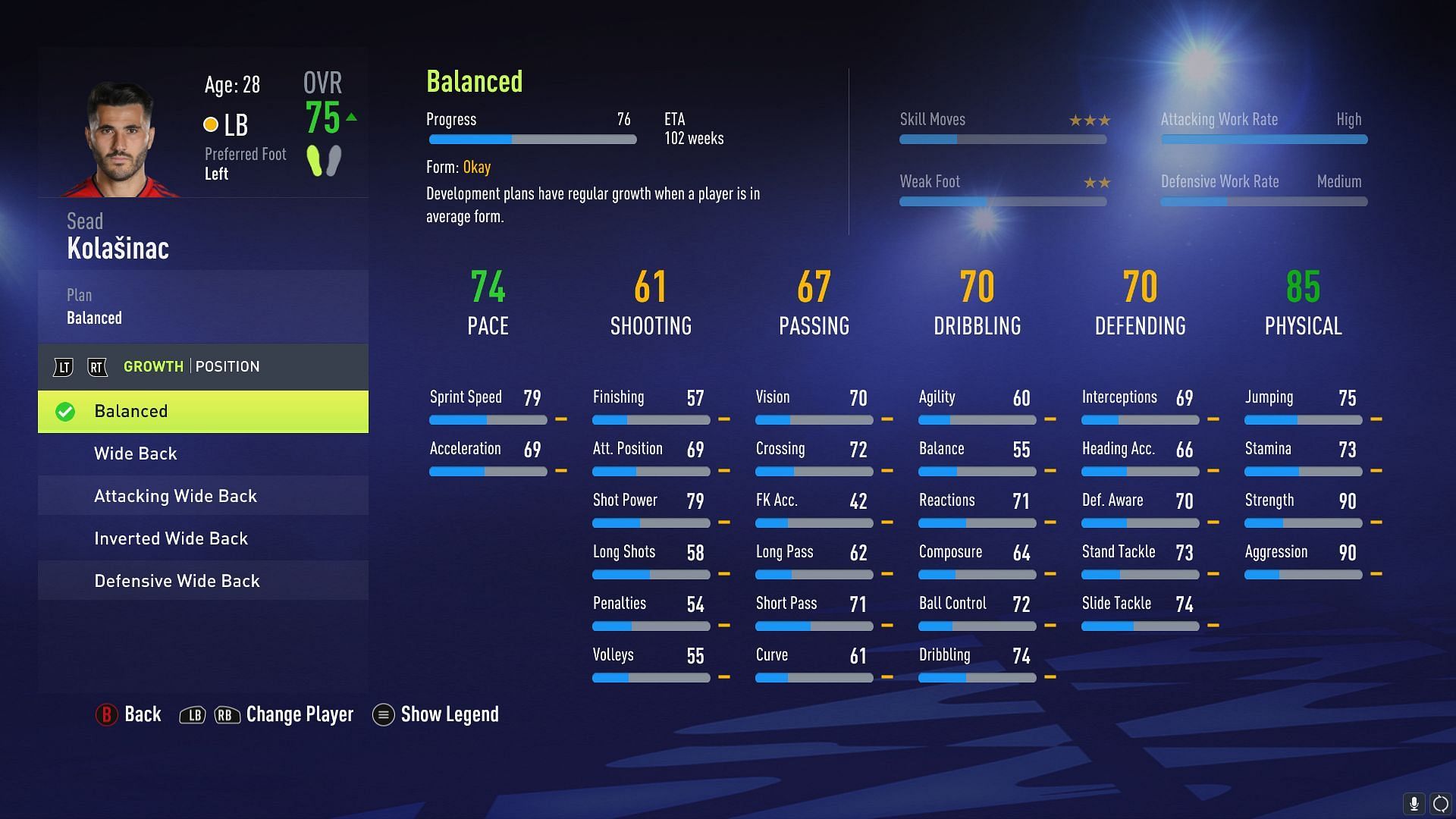 Tierney has a starting potential of 86 while already surpassing Kolasinac in terms of pace (84), dribbling (77), defending (75) and passing (75).