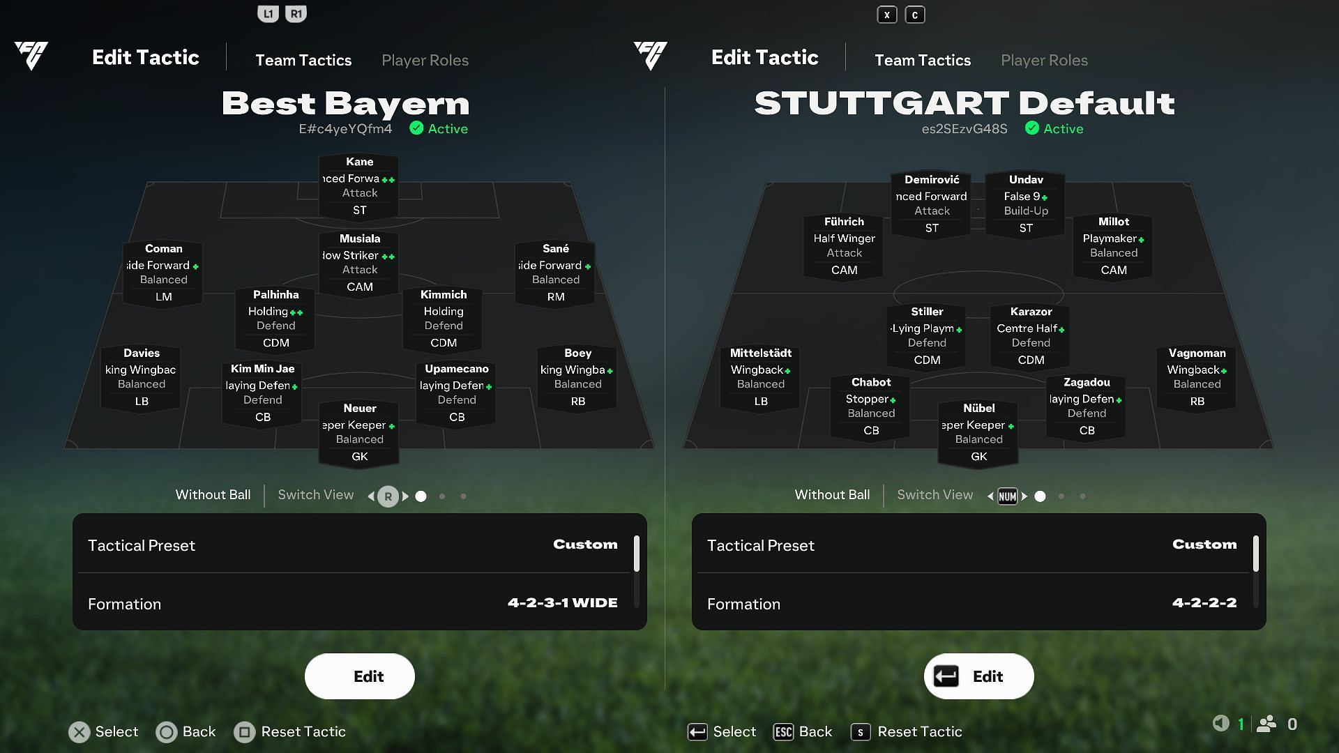 Bayern Munich vs VfB Stuttgart in EA FC 25: Formation comparison