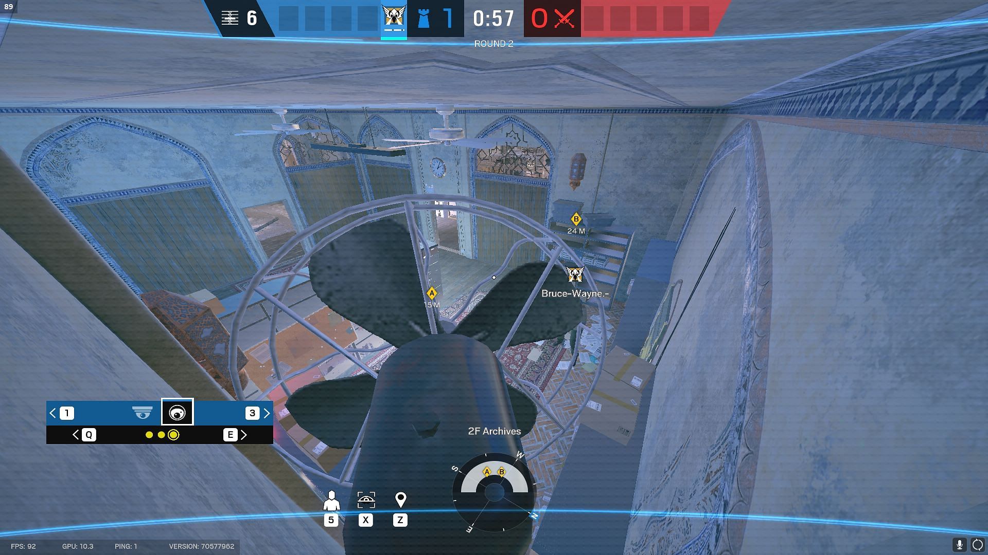 The Main Lobby camera spot is great for defending all three of the 1F bomb sites. You can go near the lobby desk as shown in the image, and throw the camera on the metal stick placed near the ventilation system.