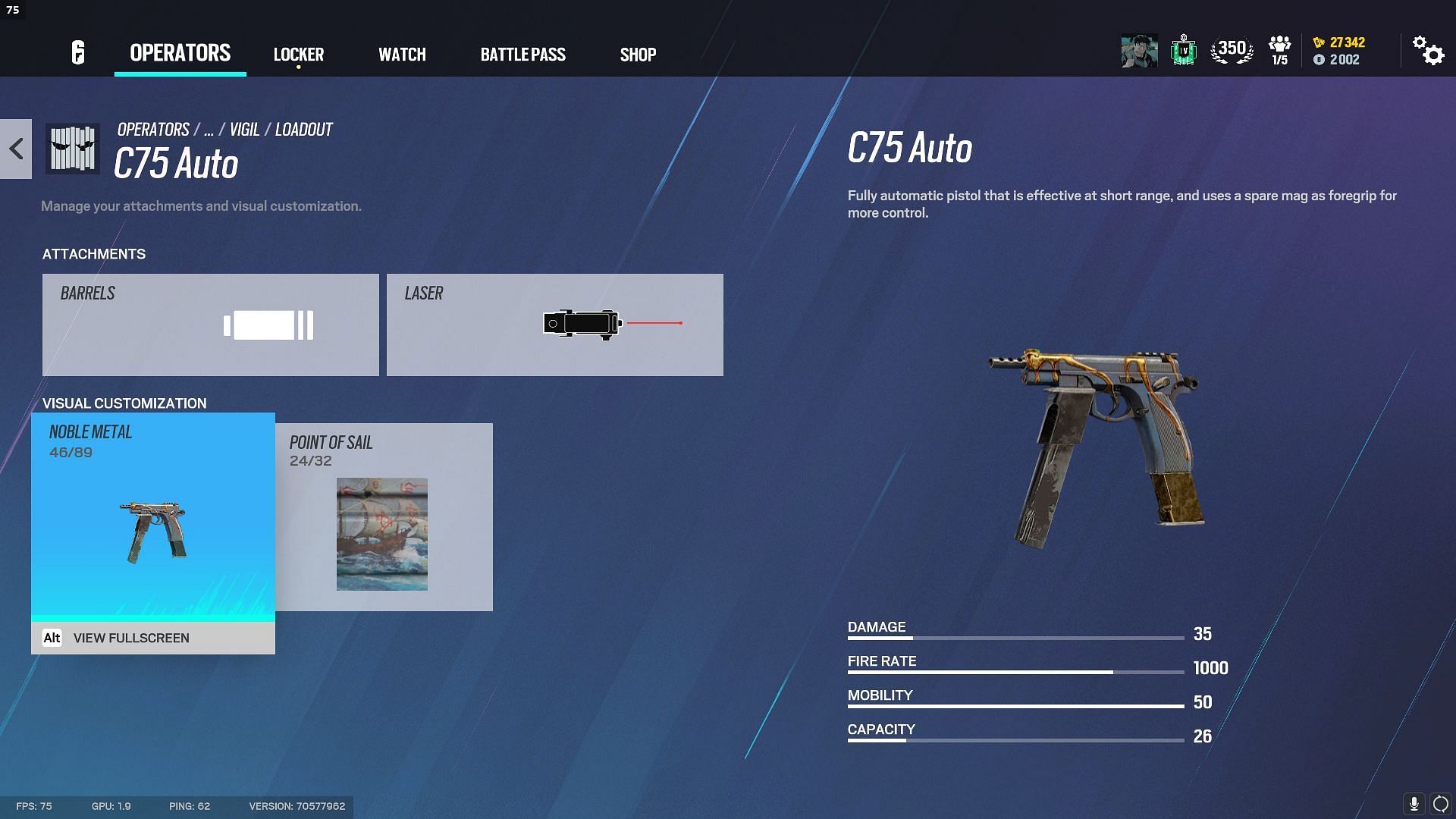 The C75 Auto has an extremely fast fire rate of 1000 RPM, with a damage of 35. The 26-round magazine capacity also makes it a worthy secondary.