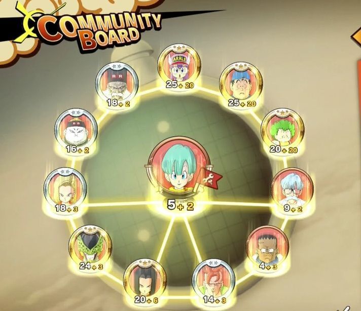 The Development DBZ Kakarot Community Board has 12 Soul Emblem slots. The "leader" of the Board is Bulma who cannot be removed. This Community Board helps you develop Cars and Robo Walkers easier. The buffs from the Development DBZ Kakarot Community Board are as follows: