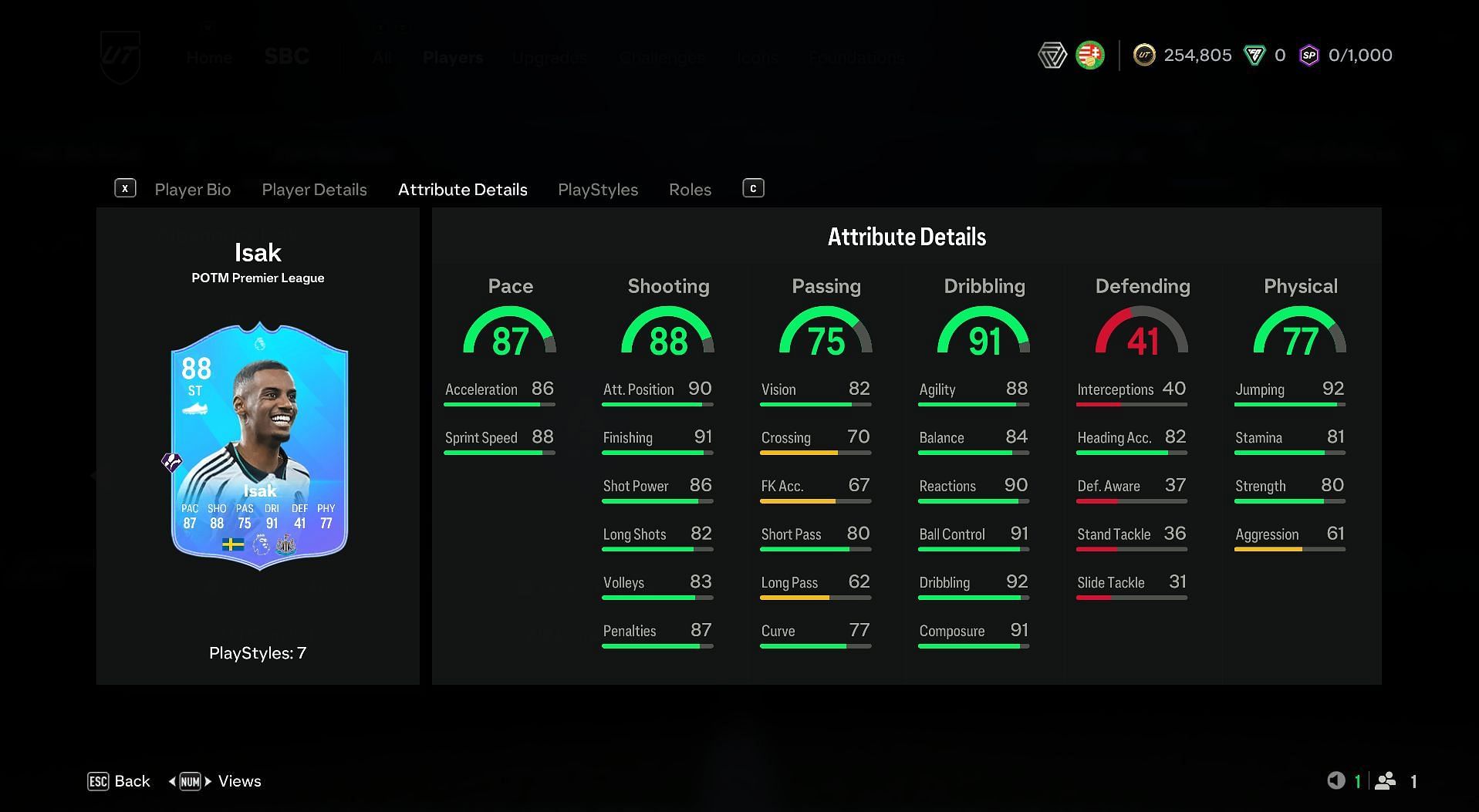 The overall cost to complete the Alexander Isak POTM SBC is around 86,550 EA FC Coins. The exclusive POTM card has a Trivela+ playstyle trait with six other basic playstyles. However, it won’t be something to home about since EA Sports has nerfed the Trivela shot in their earlier patch. On top of that, the 77 Physicality and 75 Passing aren’t that great considering the other meta striker options.