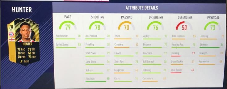 This year, fans hoped Hunter would get a good card considering all the hype surrounding The Journey Returns. But, alas, they were disappointed. He's been given a very average rating. Hunter has got decent pace but everything else is pretty mediocre. No particular rating stands out. Hunter has the following key attributes - Pace (79), Shooting (78), Passing (70), Dribbling (76), Defending (50), Physical (73).