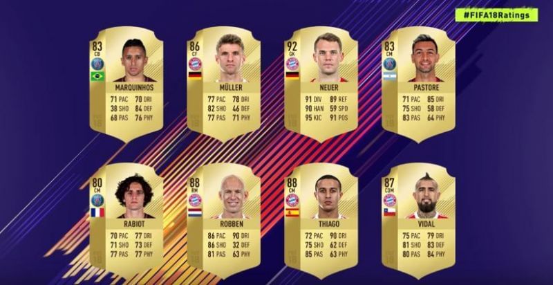 That aside, players like Angel Di Maria, Lucas Moura and Javier Pastore have their cards downgraded from FIFA 17. Adrien Rabiot, who started FIFA 17 with a 78 rated card, has got an upgrade with an 80 rated card this time around. Promising Brazilian defender Marquinhos suffered the 6-1 debacle of PSG at the hands of Barcelona, hence his overall rating seems to have suffered and received an increment of only a point.