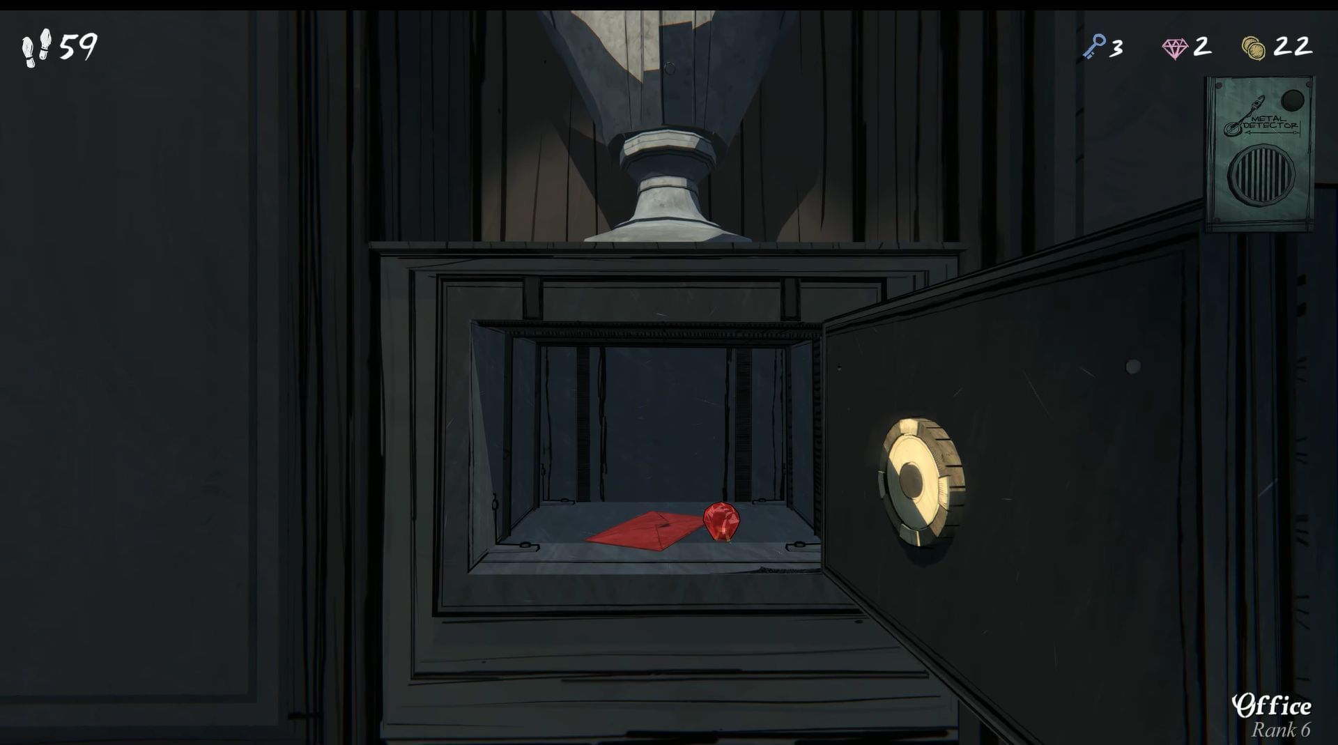 Return to the office, and you can find a dial underneath the first clue note; turn the dial clockwise and the safe will be revealed. Inspect the office one last time and count all of the miniature busts of Count Isaac Gates. There are three busts, and this is the final clue for the safe.