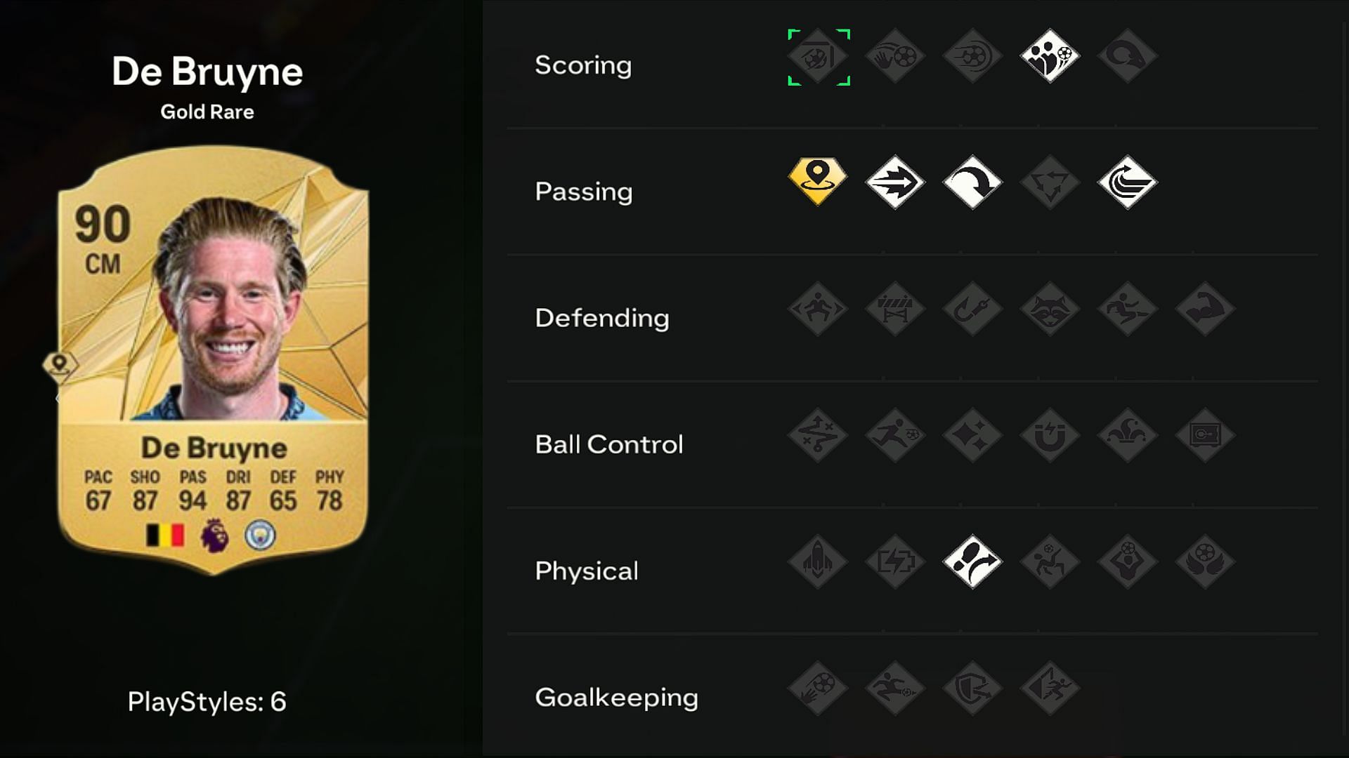 Compared to the Real Madrid star, De Bruyne primarily features passing PlayStyles. His arsenal includes Incisive Pass+, Pinged Pass, Long Ball Pass, Whipped Pass, Deadball, and Trivela. While all of these are meta for playmaking, he might feel clunky occasionally. However, it is nothing that a Finisher or Engine chemistry style cannot fix.