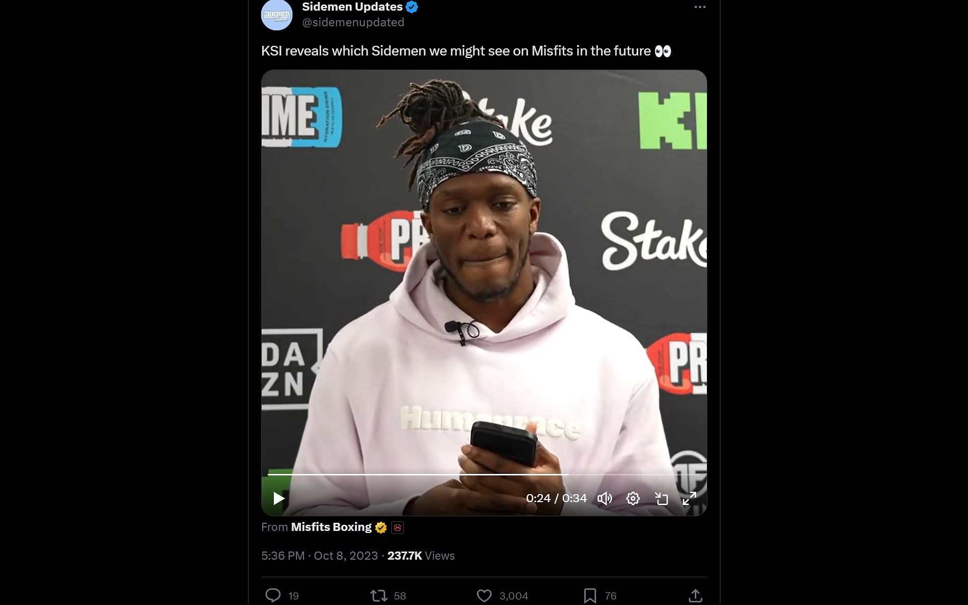 X user @sidemenupdated's post featuring KSI's take has garnered significant traction. One fan expressed enthusiasm about Vikkstar123 fighting in a boxing ring: