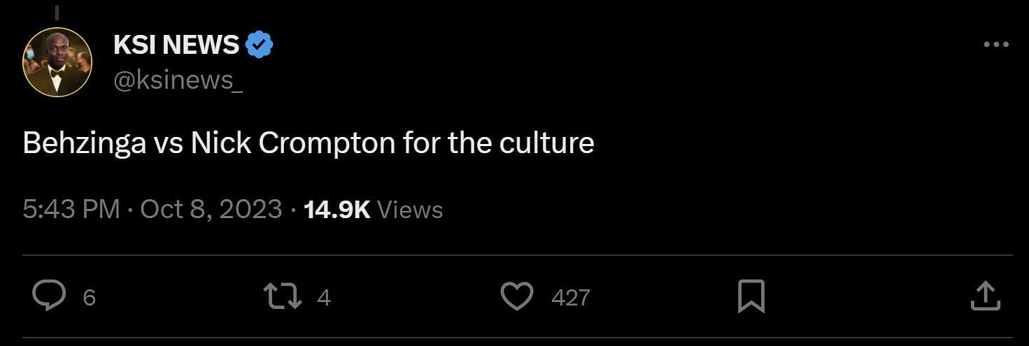 "Behzinga vs Nick Crompton for the culture."