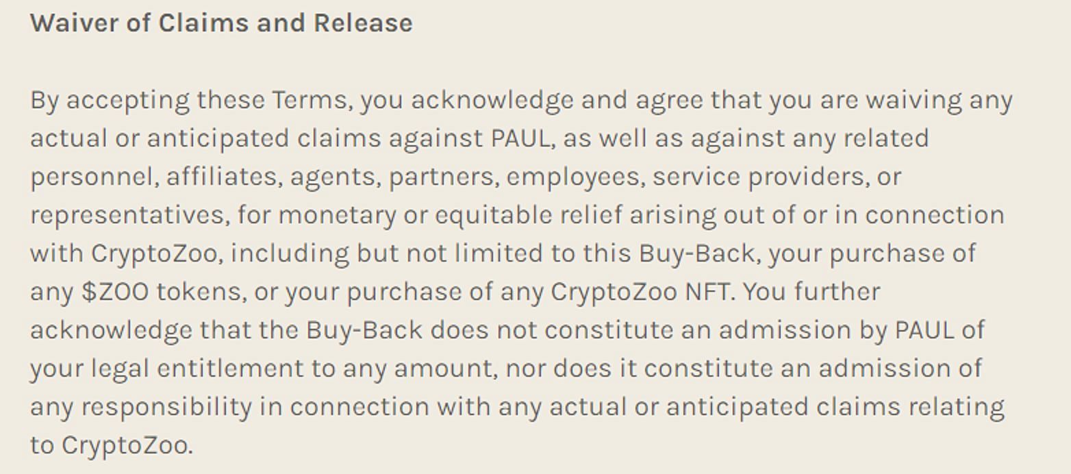 Another controversy arose from the inclusion of a clause on his buyback program website, which stated that individuals claiming a refund would forfeit their right to pursue legal action against him: