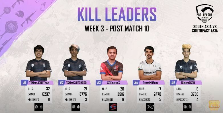 After Day 2 of week three, TSM-Entity topped the leaderboard with three chicken dinners and 185 points. They are followed by GODLIKE and Marcos Gaming, who ended the day with 119 and 98 points respectively.