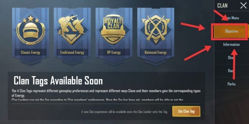 Clan tags will be set in the objectives tab in the clan's option, inside the objectives tab, where the leader can set the same. The leader has to keep in mind the clan tag, as a wrong clan tag can lead to a bad performance by the team.