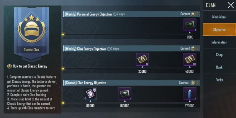 If the clan tag is set to classic, then these missions will be related to playing a classic game in PUBG Mobile. These missions can also ask users to complete the daily clan training in the clan section of PUBG Mobile.
