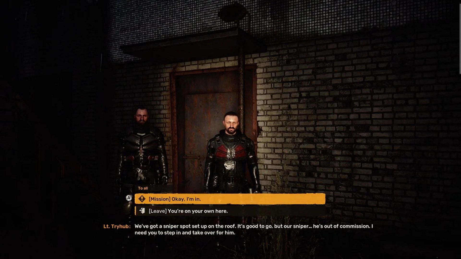Lieutenant Tryhub and Major Rodetsky will also ask you to assist their soldiers by helping them patch up. You must assume the post of a sniper on the roof to make your offensive against the Monoliths easier. However, both these tasks are optional.