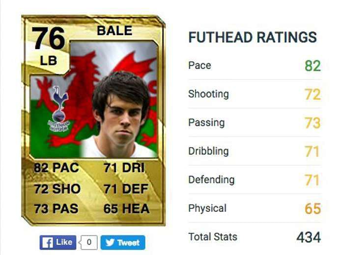 Gareth Bale, at 76, was just beginning to establish himself as a world-class player although few would have anticipated the improvement he has shown since then. He scores modestly on pace (82), passing (73) and dribbling (71).