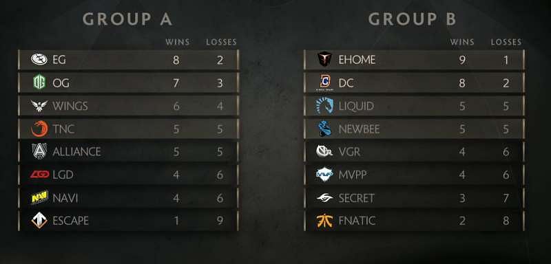 EG and OG sit atop Group A comfortably while Wings, Alliance, TNC, LGD and Navi are all in the running for the remaining two Upper Bracket slots. Group B has been highly unpredictable and we find Wildcard winners Ehome and NA side Digital Chaos at the top. Liquid and Newbee should also be making top 4 if all goes to plan but if MVP Phoenix or Team Secret decide to show up, it could make for a very exciting final day.