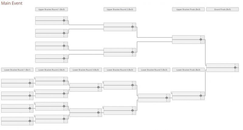 The Main Event will take place over 6 days from 20th August to 25th August in front of a live crowd at Roger's Arena. All matches will be contested in a Best of 3 series except for the first round of the lower brackets which will have a Best of 1 format and the Grand Final which will be Best of 5.