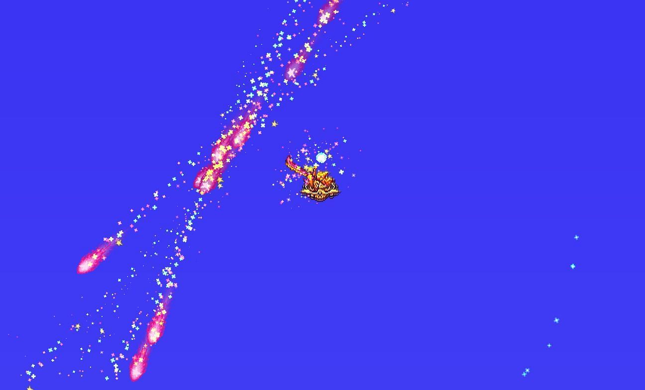 The sword boasts an incredibly high base damage and has a chance to shoot a barrage of stars when swung, making it one of the most powerful weapons in the game. Its special ability makes it particularly effective against groups of enemies, as the stars can hit multiple targets at once.