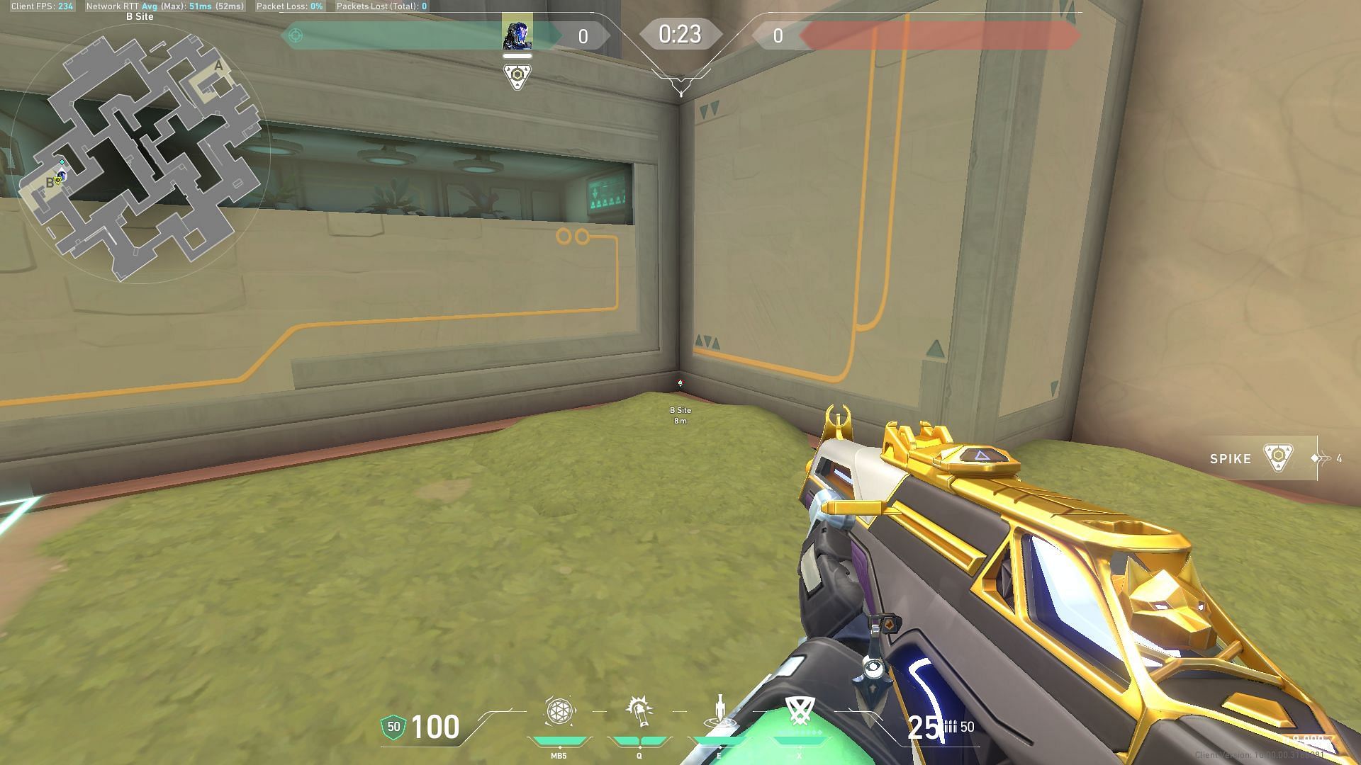 Place yourself at the corner of the wall at B-site.