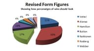 The only real discrepancy is Button’s huge shift out in price. He is given a two percent chance of victory despite boasting an eleven percent win to race ratio. This should require no explanation. His car is not as good as it was when those wins were achieved last season.