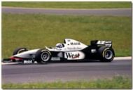 In his second year with McLaren, Coulthard finished the 1997 Drivers’ Championship in third place (following that in-famous Schumacher’s disqualification), tied on points with Jean Alesi. He had won the Australian and Italian Grands Prix as well as even recording the fastest lap at the race in Montréal. He had been leading in Canada, but was delayed for over a lap by a clutch problem during his second pit stop which ruined the race for him. However, several minutes later Panis crashed, causing the race to be stopped. Had Coulthard’s car not stalled, victory would certainly have been to his name. At the last race of that season in Jerez, Coulthard was obliged by team orders to concede second place to Häkkinen with three laps to go before they (the team orders) were banned. Villeneuve needed to finish the race to win that year’s drivers’ championship in a car which was underperforming following the lap 48 collision with Schumacher. He gave way to the two McLarens on the final lap, with Coulthard reported to be not bubbling with joy after the event. In 1998, McLaren cars won nine of the races, but Coulthard’s only victory of the season was at the San Marino race. He finished second behind his team-mate five times that season.