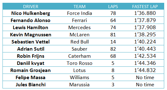 McLaren’s Kevin Magnussen completed the most number of laps and had the fastest lap in the first session. Red Bull had a miserable day again as world champion Sebastien Vettel could complete only 14 laps and found himself nearly 4 seconds off the pace.