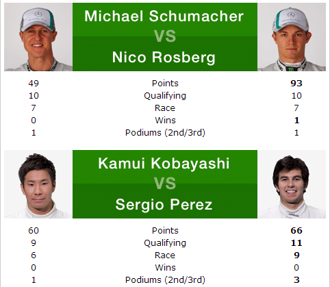 As far as their drivers are considered, it would be wrong to say that Nico Rosberg had the upper hand even though the stats do say that. The main reason for that is the reliability problems that plagued Michael Schumacher’s Mercedes during the first part of the season. Considering those, I would say both Nico and Micheal were on par and their lap times were extremely close throughout the season.