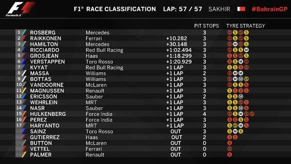 Following an eventful race characterized by a number of incidents and debris on the track, Mercedes appear to continue to dominate, although it is Rosberg who appears so far to have taken the mantle from double reigning champion Hamilton.