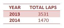 Here is a table of the total number of laps completed by the drivers and their aggregate times.