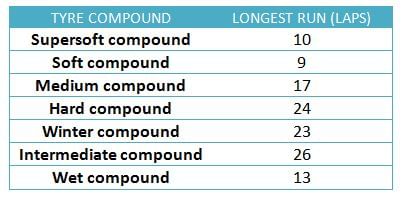 The tyres were put to their full use as well, and here is a table summarizing the longest stint of each tyre: