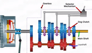 A typical automobile gearbox consists of main shaft,lay shaft ,dog clutch and the selector mechanism.The gears on the main shaft are directly engaged to the gears on the layshaft and rotate with them.