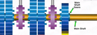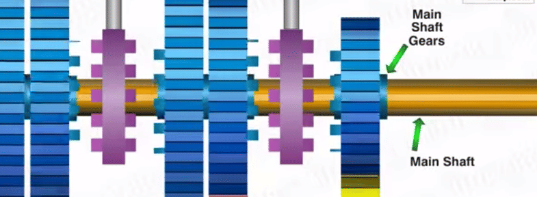 The main shaft gears do not transmit power to the main shaft, as they are mounted over the bearings.