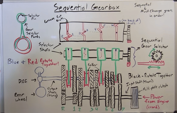 Here is a schematic diagram of the operation of the Sequential gearbox: