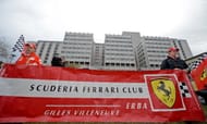 Members of a Ferrari supporters club join fans and well-wishers as they hold a vigil for the former German Formula One driver Michael Schumacher at the Grenoble University Hospital Centre on January 3, 2014 in Grenoble, France.