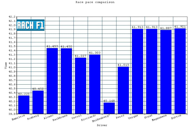 Looking at the times, it’s very clear that Mercedes AMG F1 are in a clear lead, both in race pace and qualification runs. There’s a clear half a second gap between Hamilton, who was first on both the practice sessions, and the next driver from Ferrari in third – that’s Alonso. If you look at the race simulations, there’s a gap of around two tenths of a second between Ferrari and Red Bull, but then that clearly depends on how much fuel is being carried by whom.