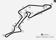 The above format of the track consisted of four long straights, each of roughly 1.3km in length. The long flat hairpin at turn 5 was, in particular, a very dangerous corner.