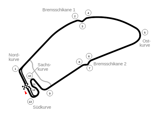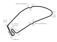 This new circuit avoids the long straights through the dense forests, but still retains a pull as a high speed track. The start finish straight, the straight after turn 1, the hairpin and Sachs corner are the places to overtake. During the redesign, the stadium section was the only part of the track that was left untouched.