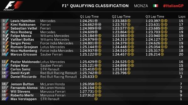 In the press conference following the session, Raikkonen said he was “surprised but happy.” Both drivers were pleased at a strong qualifying performance at their home race, with Raikkonen describing it as a "good result not just for ourselves, but for our fans and Ferrari people behind us.” Vettel echoed the sentiment, saying "to see the tifosi waving and jumping up and down is incredible. It's like nothing I've experienced before.”