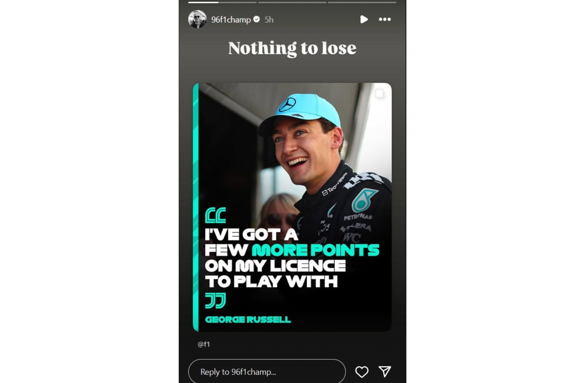 "I mean, I've got a few more points on my license to play with. So, yeah, let’s see."