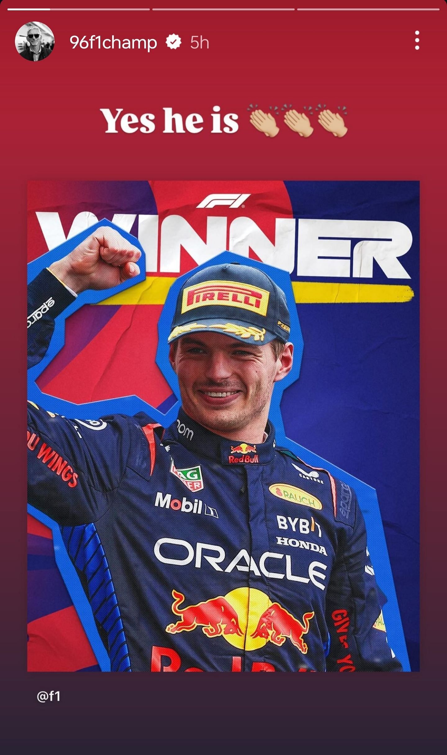 The 1996 F1 champion took to his official Instagram account to share a picture of Max Verstappen on the story. Sharing the picture, he wrote,